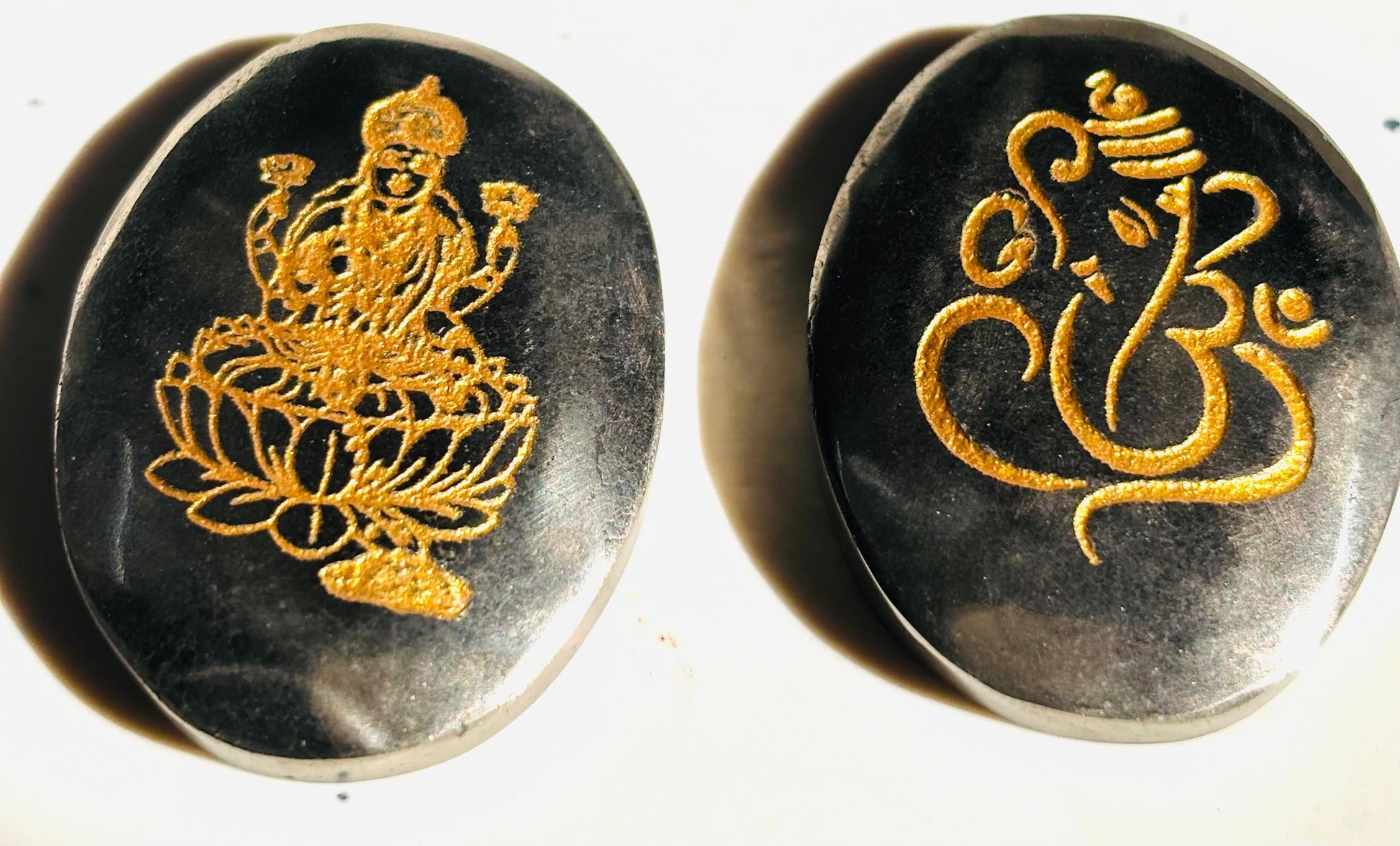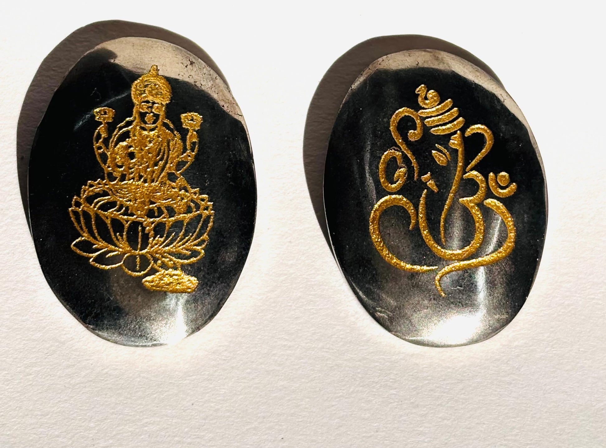 Crafted from natural Pyrite, also known as Fool’s Gold, this sacred coin brings together the powerful energies of Lord Ganesha, the remover of obstacles, and Goddess Lakshmi, the bestower of wealth and fortune.